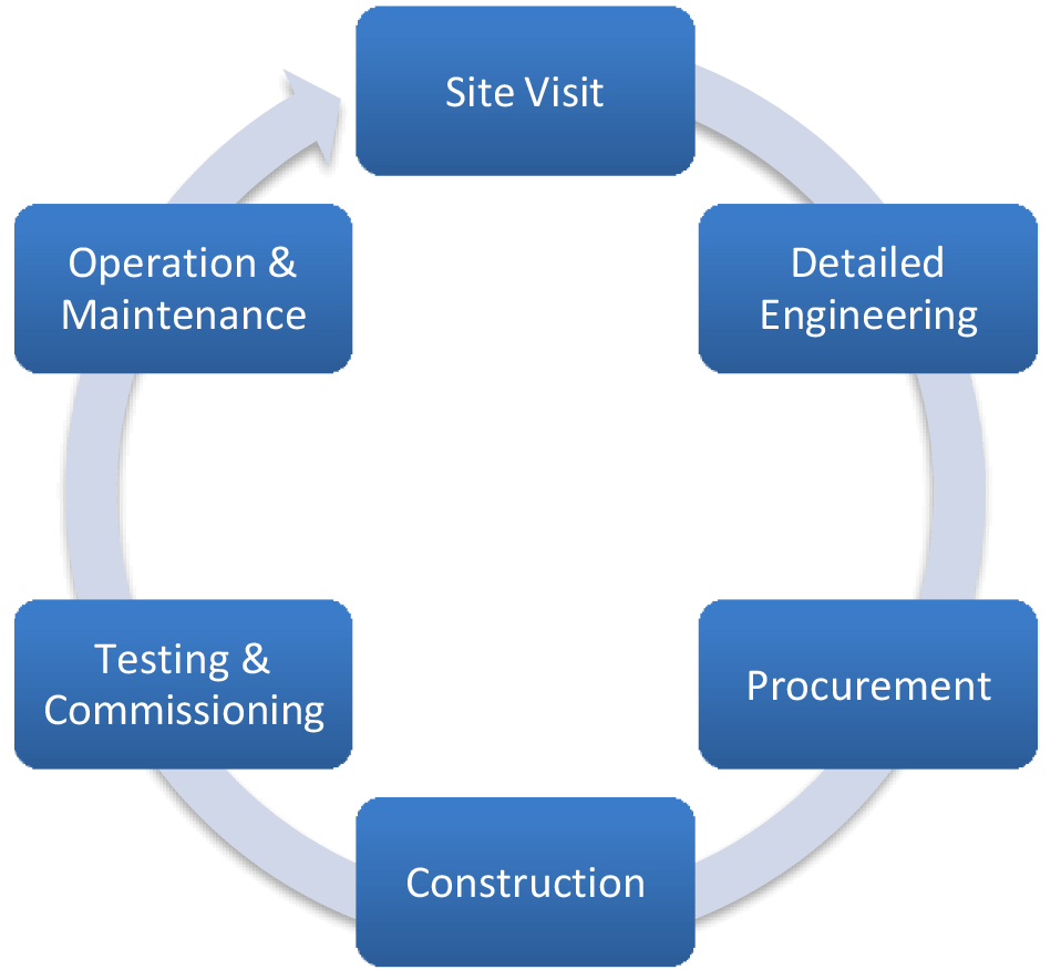 Commissioning of projects within 3 – 6 months of contract closure, typically less than 30 days of actual installation work on site.