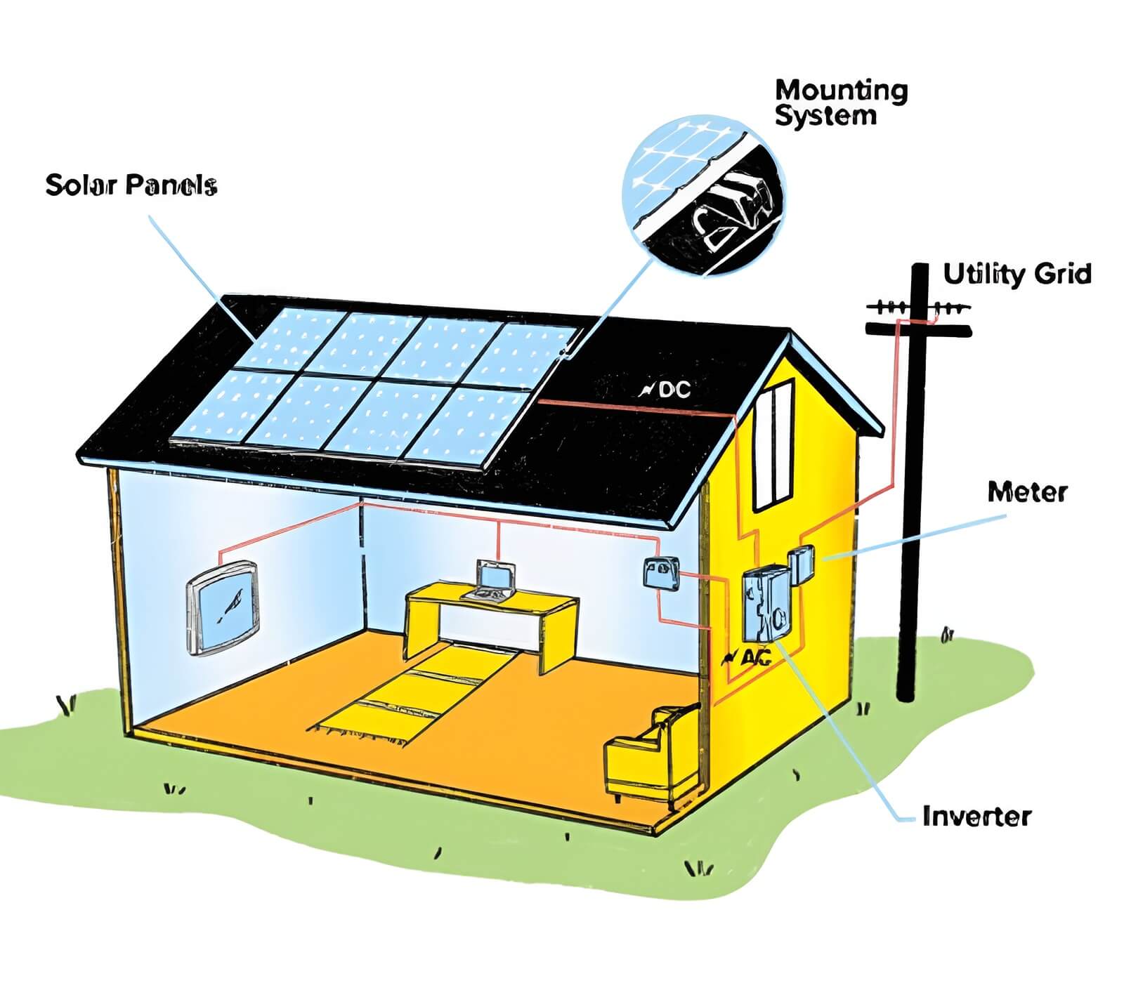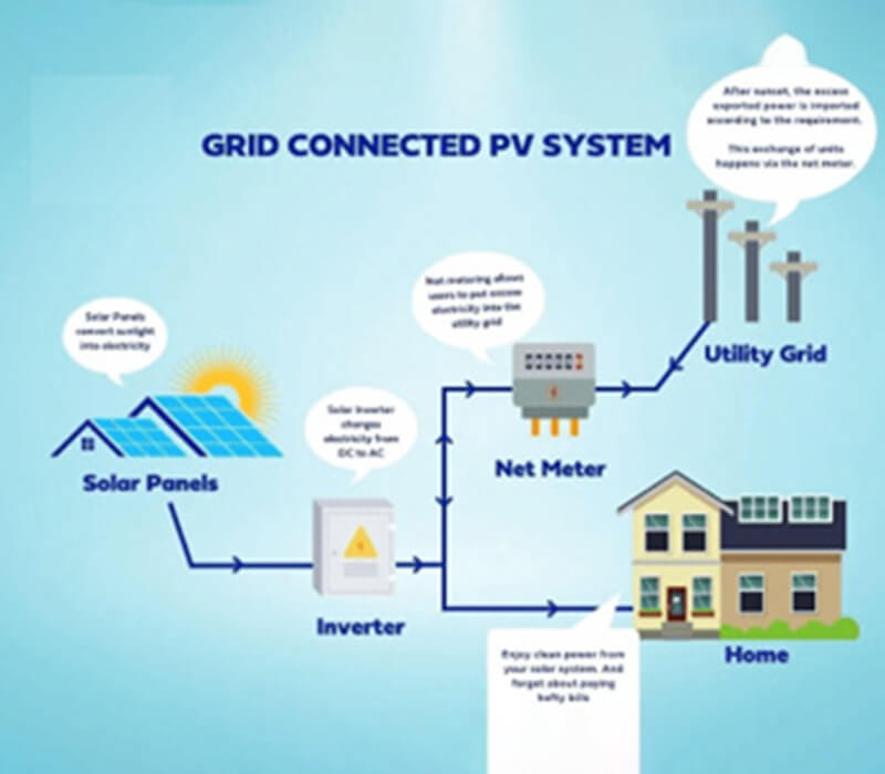 A grid-connected rooftop solar system seamlessly integrates with the existing power grid infrastructure, offering a sustainable and cost-effective energy solution for residential properties. Grid-connected systems are one of the most popular types of rooftop solar installations that serve as a perfect long-term investment. This system consists of solar panels installed on the roof, which harness sunlight to generate electricity. Unlike standalone solar setups, grid-connected systems allow surplus energy produced during the day to be fed back into the grid, earning credits or reducing electricity bills through net metering arrangements.